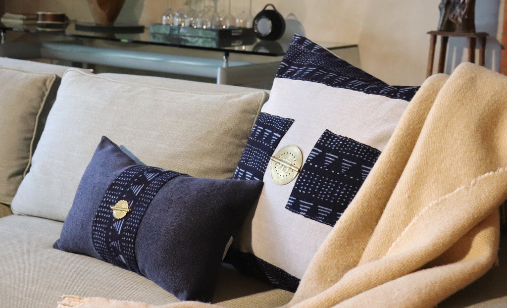 - Materials: 100% cotton mudcloth, handwoven and naturally dyed with indigo