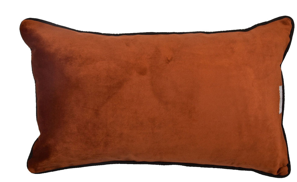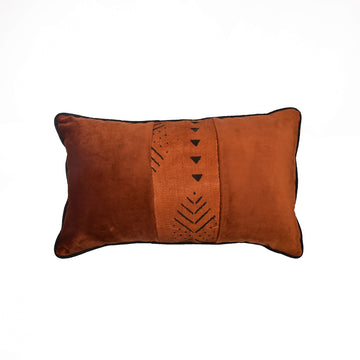 Materials: 100% cotton mud cloth, burnt orange velvet backing, black piping